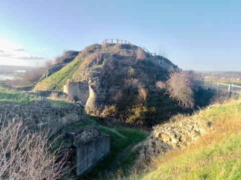 Relatives and I this week visited Sandal Castle near Wakefield in West Yorkshire. A rather impressive collection of earthworks and ruined walls, it once played a pivotal part in our national history. The nursery rhyme The Grand Old Duke of York may refer to Richard, Duke of York, who was defeated in its vicinity at the Battle of Wakefield in 1460.