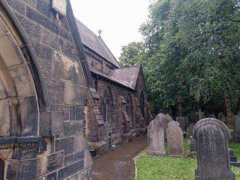 All Saints’ Church, Habergham, which is in west Burnley, lies between the suburbs and that smaller, but no less proud, town of Padiham. I once took a school party around it when I had little interest in ecclesiastical structures, and it was already late when I called this time, the doors firmly locked. It all appeared rather sombre and dark, and it was not just the fading light of a mid-summer’s evening. The stones had been blackened by a century and a half’s smoke from the factories and mills of East Lancashire. Traces of its original honey colour could still be seen, but the overall appearance was one of blackness and shadow. The cost of getting it sandblasted may not be worth it, and church resources are usually stretched enough without beautifying buildings. This church has paid a price for its location, while Salem Chapel, though 28 years its senior, has better stonework. This is not because the Independents of Newby Hill cared more for their building, but because it was situated further away from the fiery furnaces and belching chimneys.