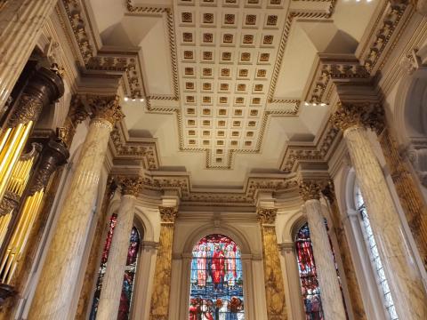 It is from the early eighteenth-century, and is rather ostentatious, reflecting the fashions of Rome, where the architect, Thomas Archer, had visited before working at Birmingham in 1711. So though it might be modest by cathedral standards, as a parish church it was one of the grandest and most fashionable in the land. When it became a Cathedral in Edward VII’s reign, it was beautified by a number of Burne-Jones stained-glass windows which I thought rather tasteful.
