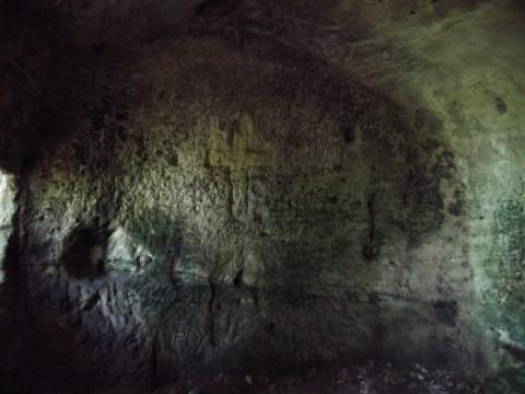 The Hermitage appears to have been divided into two parts. The western (nearer) end was probably a chapel, with a niche for a cross and some candles, and the eastern (further) end was the Hermit's living quarters. Outside, high in the rock face, are some square holes, suggesting there was once a lean-to-shelter, possibly for a few animals, firewood etc. He obtained water from Hermit's Well, situated near the churchyard.