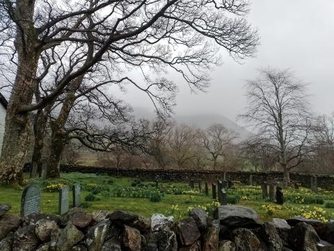 Newlands Church, situated near the hamlet of Little Town in Cumberland, appears to be a church from the Tudor period, which is unusual. It is referred to in documents from the time of Elizabath I and its simplicity, rounded windows and whitewashed walls all support the impression. Either despite, or perhaps because of its simplicity, it is a truly beautiful church. Not unlike St John’s in the Vale, which is not that far away, it offers striking views of the Lakeland fells, as though its very plainness were a compliment to its surroundings.