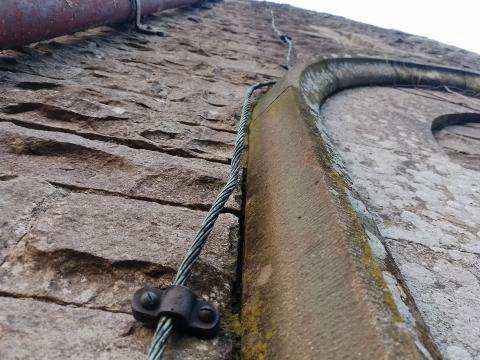I was interested to see a thick metal coil running down from its spire to the ground, a protection against lightning strikes. The Ecclesiastical Insurance Company states: