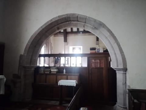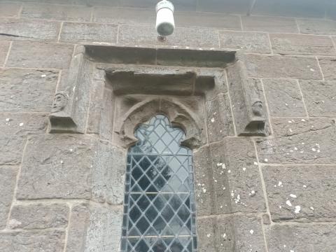 A few traces of the medieval building survive, chiefly the arch between the chancel and vestry, above. The 1650s is a little harder to spot, but the vestry windows have angular drip boards with carved faces, and come from that period, I suspect. The Victorian rebuilding project will have covered a lot of this material up, and recycled the stonework.