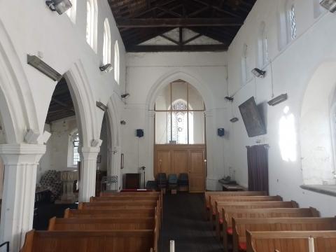Worship within All Saints is ‘higher’ than I would prefer, with a rather unattractive statue of Mary glowering over a side altar, but I did like the place, especially seeing so much evidence of its repair and re-repair. The chancel has been too long and distant for the service of communion, even for the Anglo-Catholics who worship here, so a little communion table had been brought to the top of the nave, complete with wooden chair for priestly oversight.