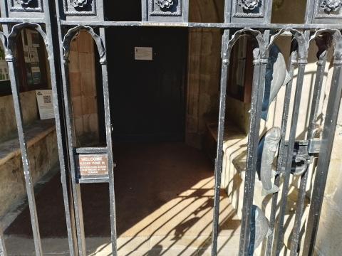 The entrance to St Michael’s Church at Kirkby Malham is given additional security by a gate. Thankfully, a deliberate gap has been made so one can pass through and enter the unlocked south door, and inspect the treasures within. I suspect that for actual Sunday worshippers, the gate is flung wide open.
