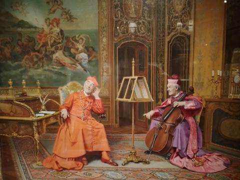 Marcel Brunery's Melomanes (Ear for Music) dates to 1935 and cheerfully hangs at Warrington Art Gallery where I inspected in the autumn. The two cardinals appear rather comical, one playing a great cello while his companion, who sits but five feet away, seems to have trouble hearing. Or is the cardinal in scarlet simply enjoying the beautiful sound made by his crimson colleague?
