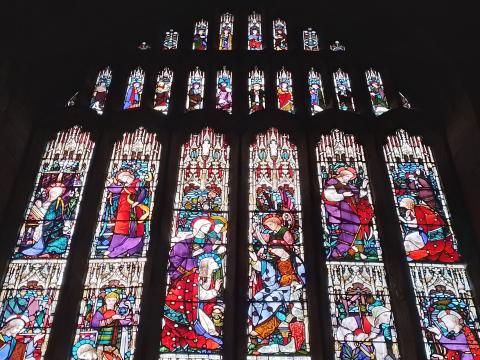 Its large, West Window is famous for its dedication to the various women of scripture. Included in its panes are:
