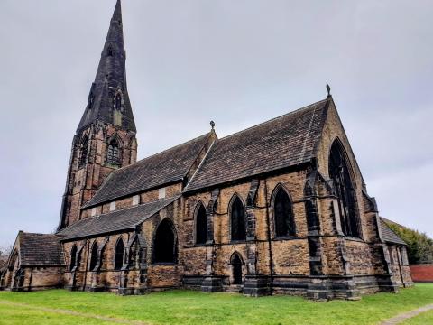 St Matthew’s Church near Stockport (‘Edgeley and Cheadleheath’) is a typical-looking mid-Victorian affair with large spire and somewhat blackened walls. I was unable to get too close on account walls and locked gates, as well as some bold signage urging readers not to trespass or play ball games, presumably addressing particular problems previously suffered.