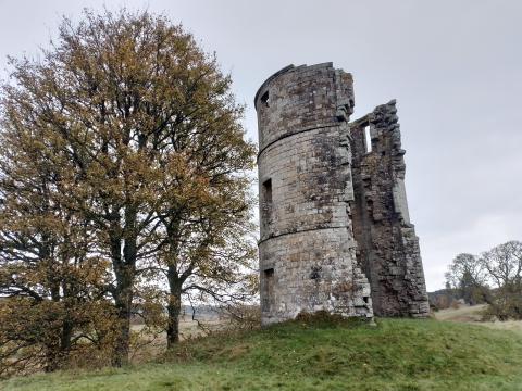 Sir Walter Scott based his 1831 Castle Dangerous on Douglas Castle, Lanarkshire. Once the fortified home of the powerful Earls of Douglas, it then served the seventeenth and eighteenth centuries as a luxurious mansion. Coal mining in the 1930s damaged the foundations and it was demolished before the end of that decade, this forlorn tower its only surviving monument.