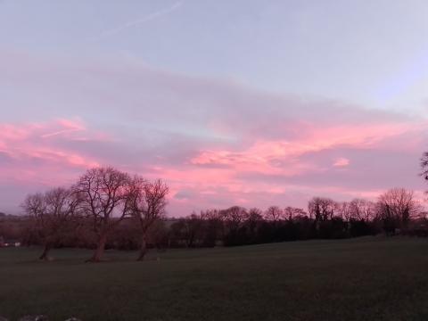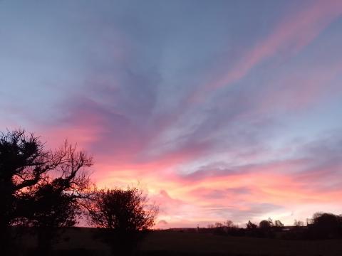 ''Red sky in a morning” is usually considered by shepherds or sailors (depending on one’s geographical proximity to the coast) to be a 'warning' of worse weather to come. That day, it never came; it was a gorgeous, warm glow of beauty for beauty’s sake. It was one of those occasions when one instinctively praises God for the splendour of His handiwork. Upon retiring back to the chapel and making myself a nice cup of tea, I pitied the atheist. Some of them would have seen those astonishingly colourful skies, and had no-one to thank.