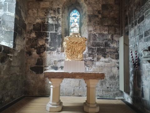 In the Chapel of St Nicholas in the York church of Holy Trinity is a peculiar, gold-coloured installation of art work: Deus Vorax (2014). It is made out of a mixture of fibreglass, gilding and concrete. The artist’s spiel, which accompanies it, states: