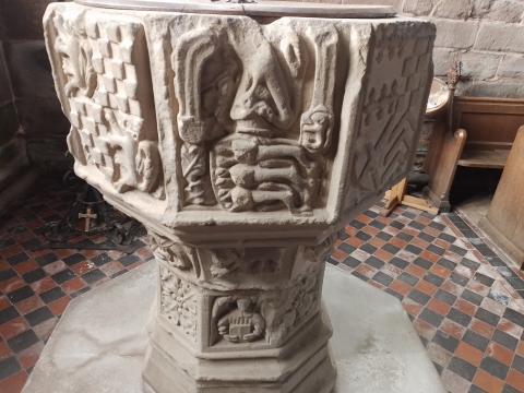 Enroute, I passed St Chad’s Church in Holt, just over the Welsh border in Clwyd and overlooking the Dee. Well might it be 'Grade 1 Listed', for its insides are awash with curios and historical ephemera. It has a heavily carved font, for example, dating to 1490, which includes the arms of King Richard III, who was killed at Bosworth in 1485; is the given year incorrect, or was the font a bold defiance of the Tudor intruder who took Richard's crown?