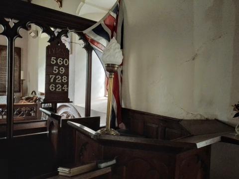 The leafy trees and general verdancy of the place probably made sunlight something of a luxury, with neither dials serving much purpose. Even the base of an old preaching cross was covered in green moss, so shaded was the ground and damp the air. Even the pulpit, within, required its own lamp (in the style, appropriately, of a torch).