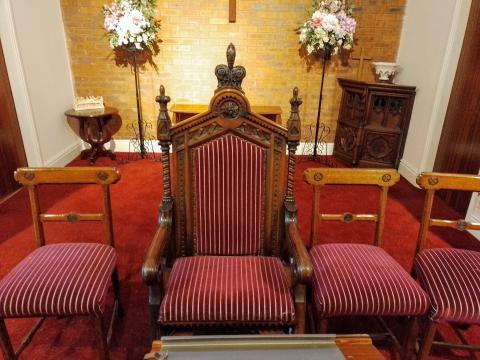 I attended a meeting of Congregational ministers at Stalybridge Congregational Church back in the spring. Originating in ‘Myles Schofield's Garret’, sometime between 1823 and 1830, it soon moved to grander premises in King and Melbourne Streets as the nineteenth century wore on. Now, thje church occupies modern premises in the town which were opened at the end of the last century. Although the style is very 1990s, some of the furnishings are clearly 1890s or earlier: a heavily upholstered minister’s chair and accompanying (and smaller) ones for deacons; a beautifully varnished communion table; an intricately carved, gothic style box pulpit. It all looks rather out of a place in an obviously twentieth-century building, yet it also bespeaks the chapel’s older, longer heritage.